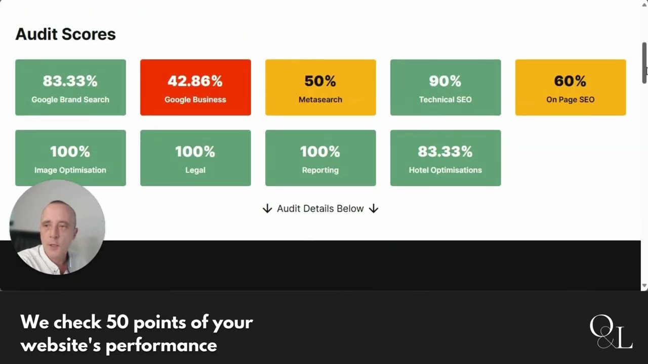 Our hotel website audit encompasses much more than just SEO. It provides a comprehensive overview of your site’s performance, covering crucial areas such as user experience, mobile optimisation, load times, and conversion rate optimisation.