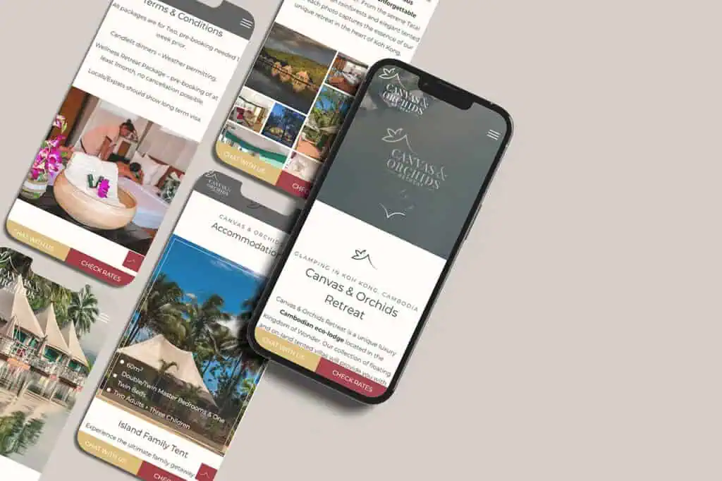 Canvas & Orchids Retreat is an eco-luxury glamping escape on the Tatai River in the Cardamom Rainforest. Guests sleep in tented villas that float on the river or sit tucked into a private island, reached only by boat. The website needed to share that sense of place, then make it effortless to book.
