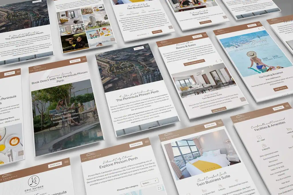 The Peninsula Phnom Penh is a four star hotel offering contemporary rooms, refined dining, and thoughtful wellness facilities in the heart of the city. The brief was to build a WordPress website that showcases the property with clarity and connects seamlessly to Cloudbeds for direct booking optimisation.